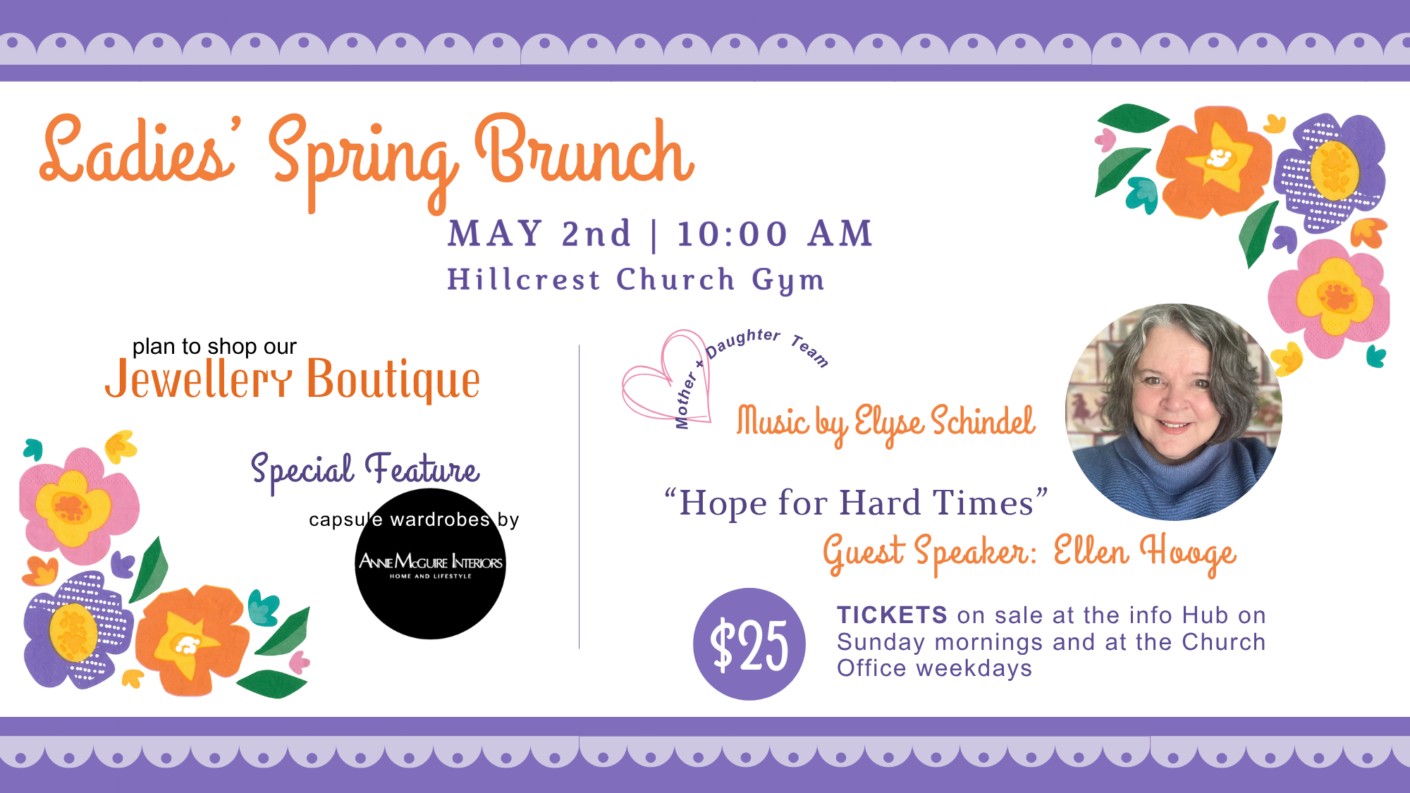 This is a great time to introduce a friend or family member to church. Mother and daughter team Elyse Schindel and Ellen Hooge will bring music and message. There will also be a special feature on “capsule wardrobes” by Anne McGuire Interiors! And of course … the Jewellery Boutique will boast all kinds of gently used accessories for sale so you can do a little shopping and support our Furniture Ministry in the process!