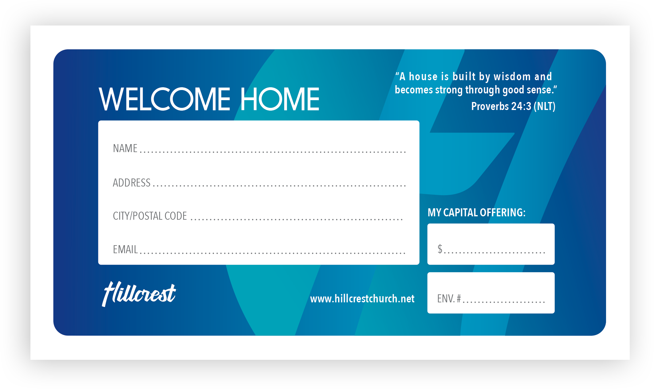 Send a gift through your online banking to giving@hillcrestchurch.net