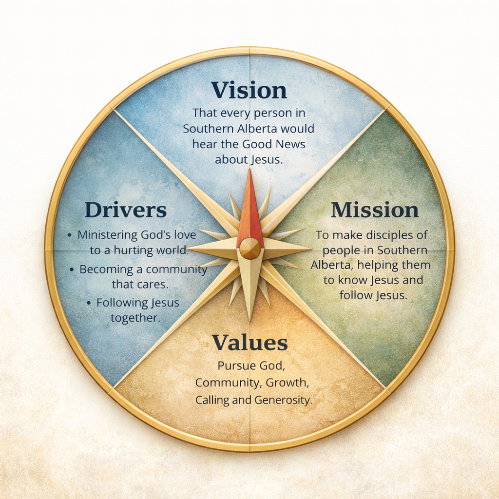 TO make disciples of people in Southern Alberta, helping them to know Jesus and follow Jesus.