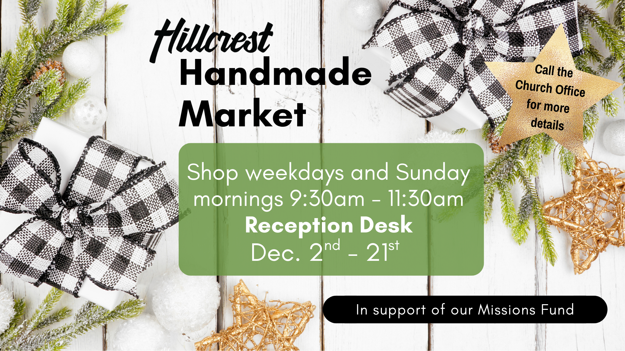 The Handmade Market is now OPEN and features items made by people in our Church Family and generously donated with a heart for doing God’s work! Thank-You so much! The Market is open during Office Hours, and Sunday mornings from 9:30am - 11:30am.