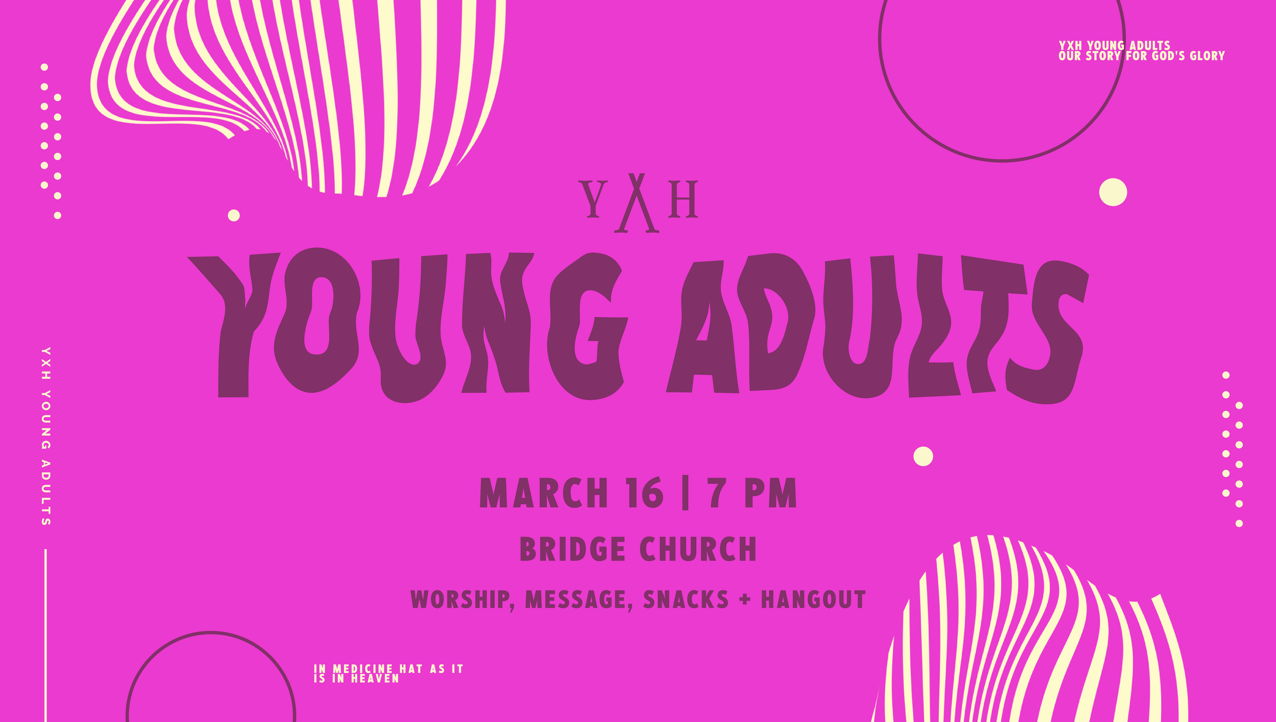 Across the City Young Adults are invited to gather for and evening of worship together. This month’s gathering is being held at the Bridge Church, 350 1 Ave NE, Medicine Hat, AB.